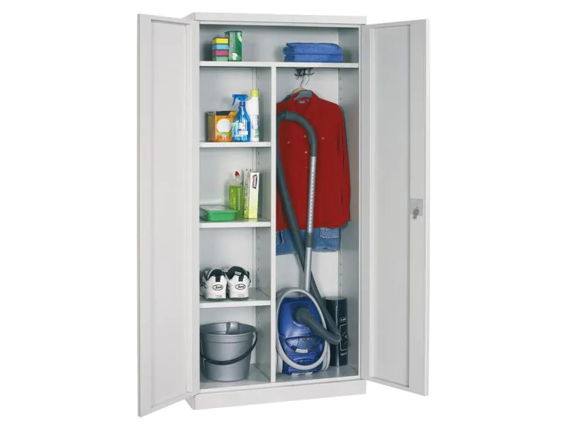 Deze metalen garderobe en opbergkast zorgt ervoor dat jouw spullen veilig liggen! Zoals de naam het al zegt is deze kast ideaal voor de werkplaats of schoonmaakruimte.