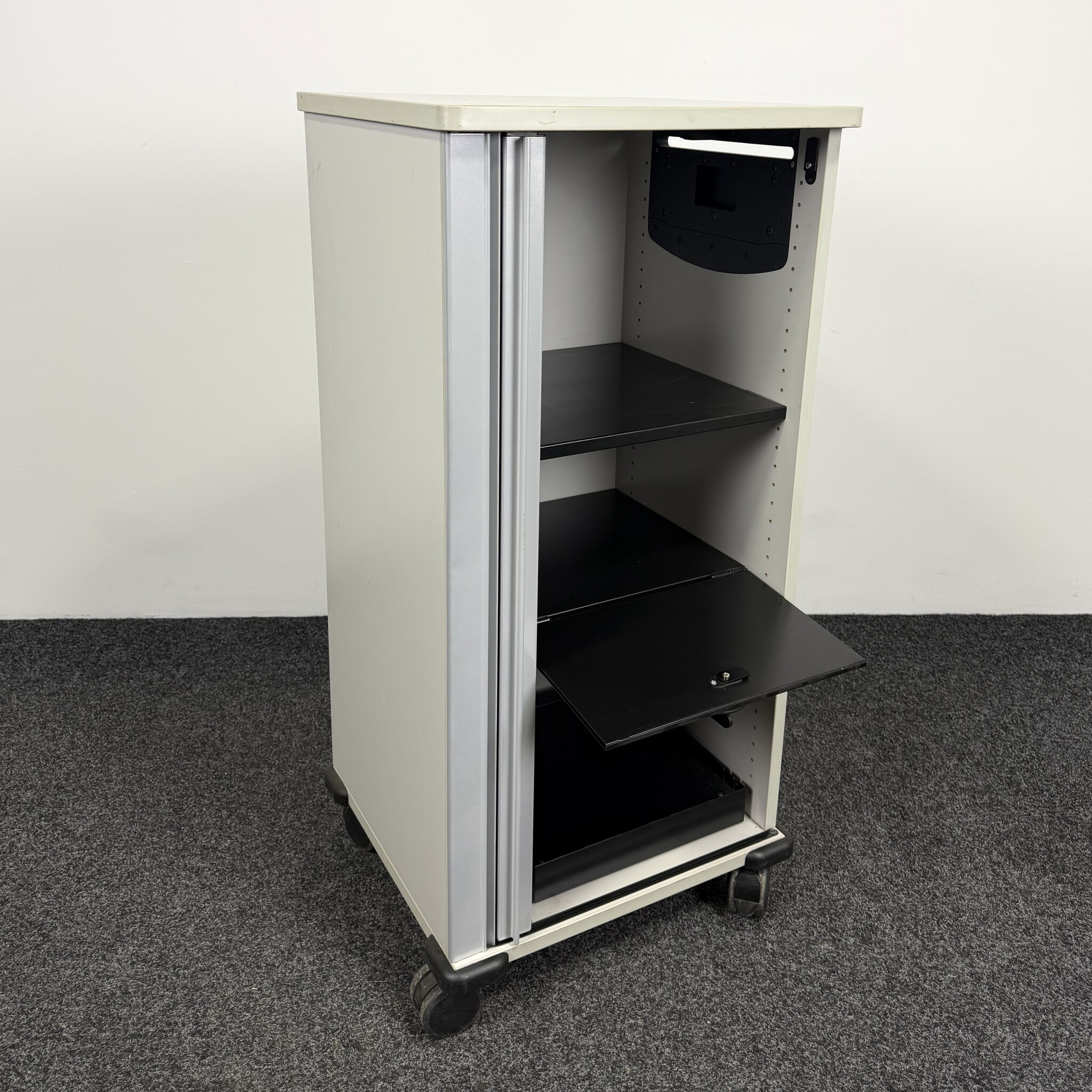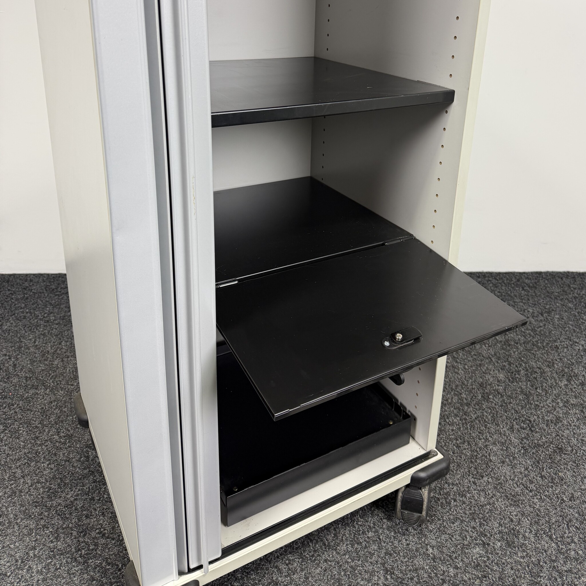 Werndl verrijdbare trolley met grijze ombouw. De trolley beschikt over kunststof deuren, is verrijdbaar en biedt de mogelijkheid uw benodigde spullen op te slaan.