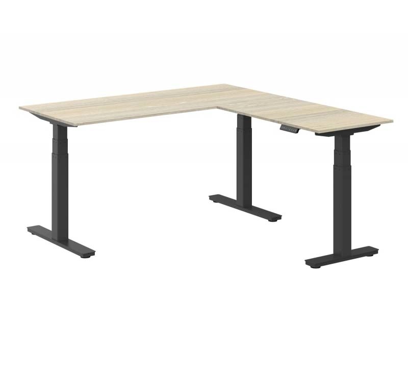 Zeer sterk en stabiel elektrisch zit-sta hoekbureau. Leverbaar in diverse afmetingen bestaande uit 1, 2 of 3 bladen.